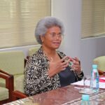 The Assistant Minister for Foreign Affairs and External Trade, Hon. Lenora Qereqeretabua, received a courtesy visit from Senior Programme Manager of the International Institute for Democracy and Electoral Assistance (International IDEA), Mr. Adhy Aman.