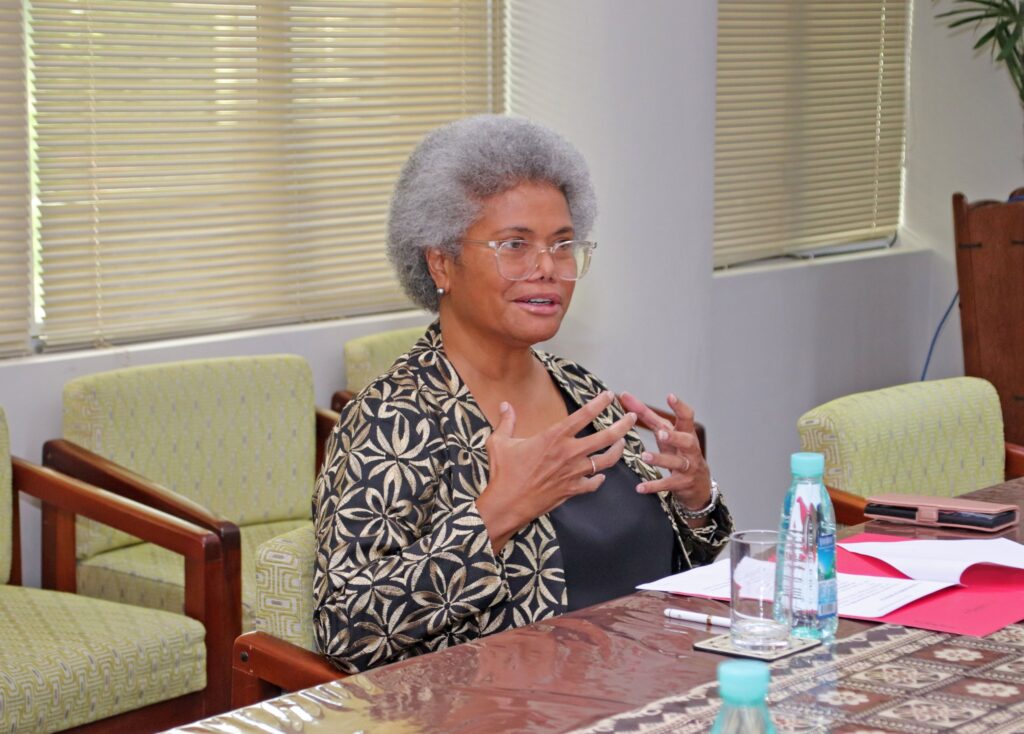 The Assistant Minister for Foreign Affairs and External Trade, Hon. Lenora Qereqeretabua, received a courtesy visit from Senior Programme Manager of the International Institute for Democracy and Electoral Assistance (International IDEA), Mr. Adhy Aman.