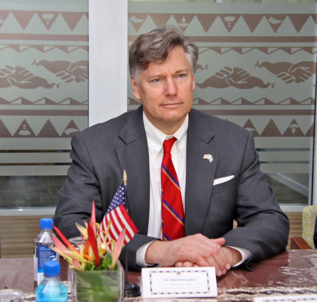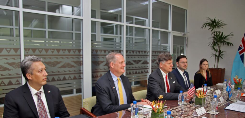 Suva, Fiji – Prime Minister Hon. Sitiveni Rabuka today hosted U.S. Deputy Secretary of State Christopher Landau on his first official visit to Fiji and held a bilateral meeting to reaffirm the strong and growing ties between the United States and Fiji. The meeting marked the first in-person meeting between Prime Minister Rabuka and Deputy Secretary Landau.